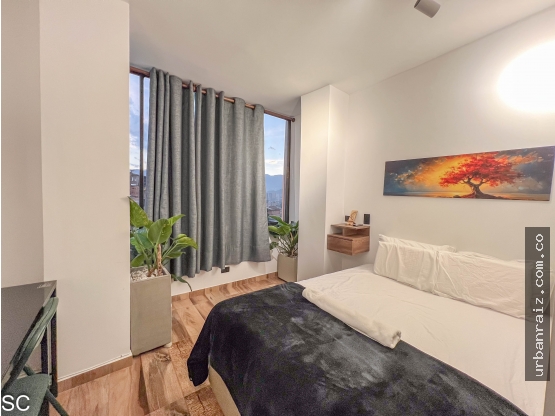 amoblada: cama de 140, 4 almohadas, juego de sabanas, y cobija. mesa de noche, tv de 40 pulgadas, mesa y silla, baño privado con agua caliente.